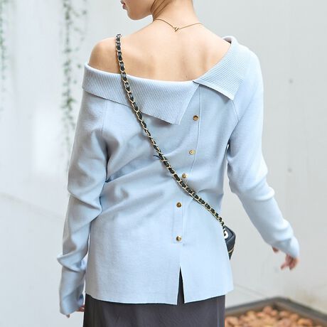 トレンドのオフショルニット。