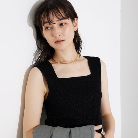 ラメスクエアノースリーブニット