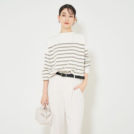 [型番:32500040000]*Detail*カリテ春の定番、綿混のキレイめなストレッチ素材を使用。目の詰まった程よい肉感で、型崩れしにくく、上品な印象に。ボーダー柄ながらも、大人っぽく洗練された雰囲気を演出します。*Coordinate*デニムと合わせれば、こなれた大人カジュアルに。ジャケットを織れば、オフィスやお出かけにも対応可能。シンプルながらも着回しの効く、春先に活躍する一枚です。