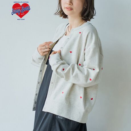 人気のハート刺繍がアクセントになった、裏毛素材のカーディガン。