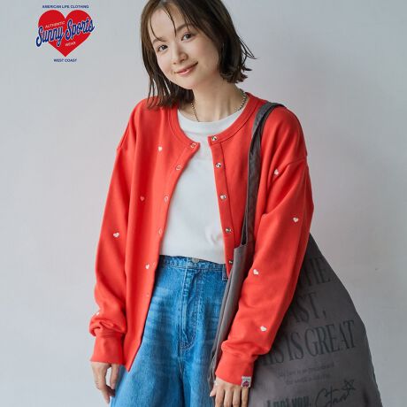 人気のハート刺繍がアクセントになった、裏毛素材のカーディガン。