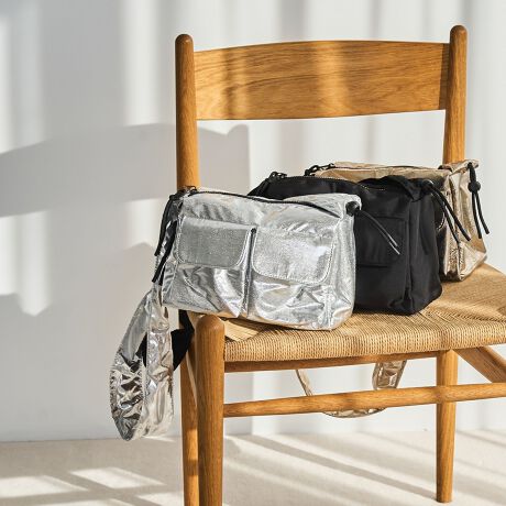 トレンド感あるダブルポケットデザインで、さらに今年顔に仕上げた三日月型ショルダーバッグ。