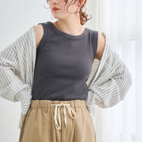 昨年大好評のタンクトップが、さらに大人っぽく進化!リピート登場で、よりシンプルで上品なデザインに