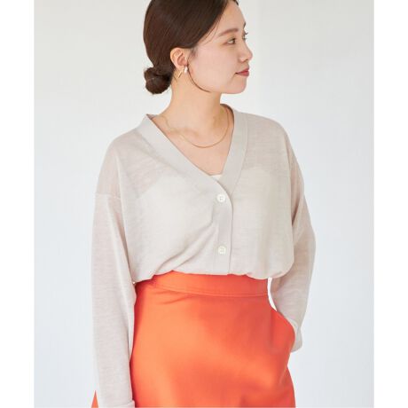 さらりとしたタッチが特徴のラミーVネックカーディガン。