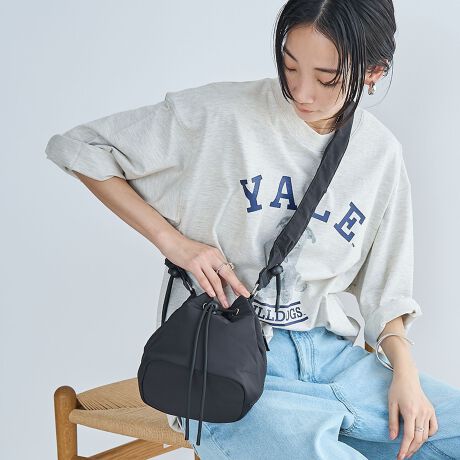トレンド感のあるギャザーハンドルと巾着シルエットの絶妙なバランスが、ラフなスタイルにもキレイめコーデにもマッチ。