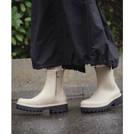 レインブーツ ショートブーツ 雨の日 サイドファスナー ブーツ 梅雨 ガーデニング アウトドア 黒 白 ブラック アイボリー ホワイト オフ 23.5cm 24cm 24.5cm 雨靴 人気 無地 シンプル 長靴 お洒落 おしゃれ 歩きやすい 滑りにくい 滑り止め 着脱しやすい 脱ぎやすい かわいい