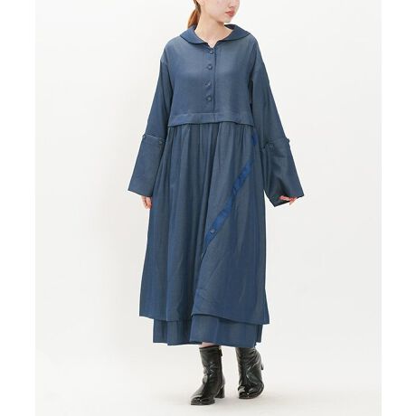 スカート部分も重ね着風になっており 1段目のスカートはあきの仕様になっているのでボタンを外してスリット風に着こなしても◎