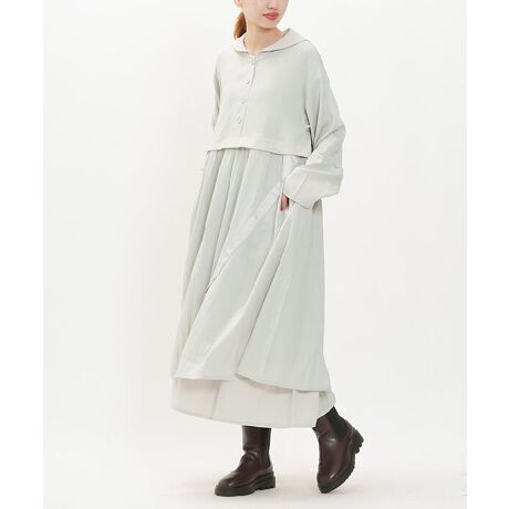 スカート部分も重ね着風になっており 1段目のスカートはあきの仕様になっているのでボタンを外してスリット風に着こなしても◎