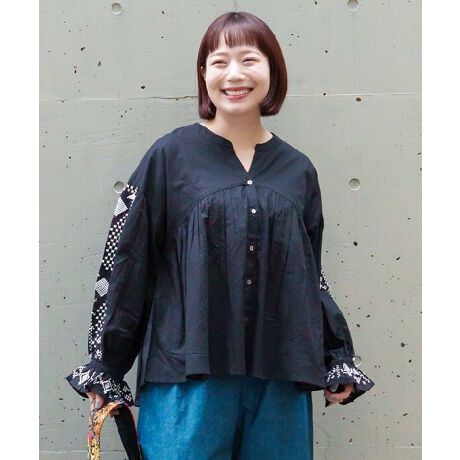 袖のエスニックな刺繍が目を惹くブラウスです。