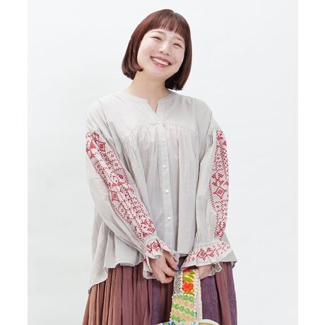 袖のエスニックな刺繍が目を惹くブラウスです。