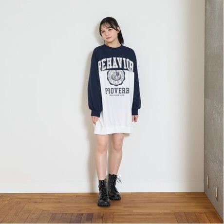 リメイク風の切り替えデザインが目を引くスウェットワンピースです。