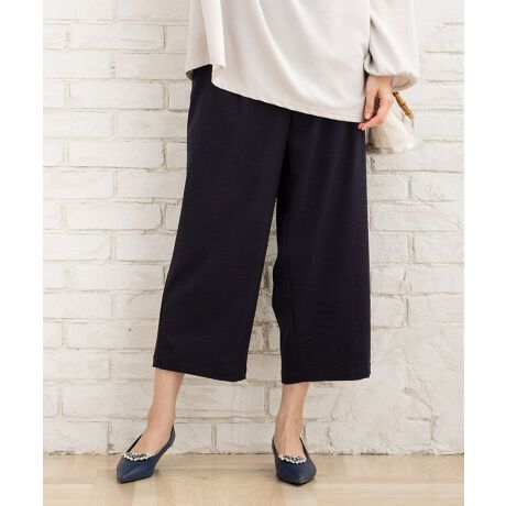 さりげない光沢感のある素材で軽やかなタックワイドパンツ。