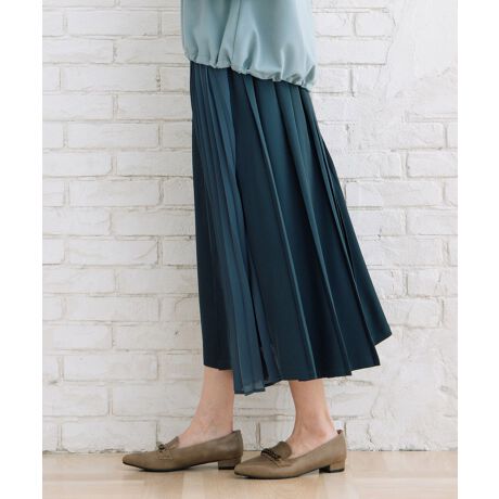 落ち感があり、広がりすぎないプリーツで大人でも着やすい美しいシルエットです。