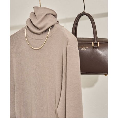 薄手ですが体のラインを拾いにくく、温かみもあるので1枚着としても活躍し、もちろんニットのインナーとしても便利です。高めの襟丈なのでくしゅくしゅっとさせて着用するのも素敵です。