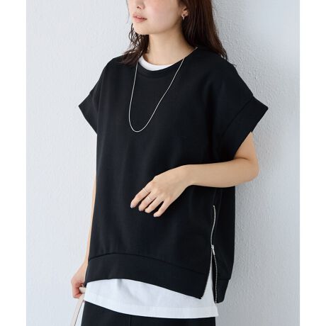 腕を華奢に見せてくれる広めのアームホールもポイント。前後差を設けた着丈は、気になるヒップラインもカバーしてくれます。