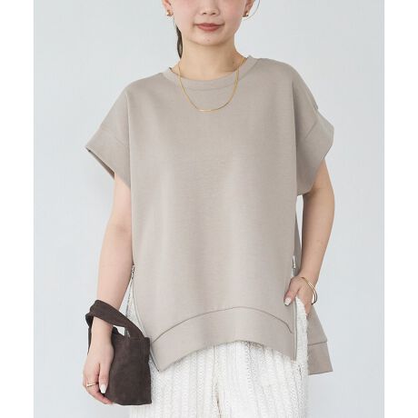 腕を華奢に見せてくれる広めのアームホールもポイント。前後差を設けた着丈は、気になるヒップラインもカバーしてくれます。