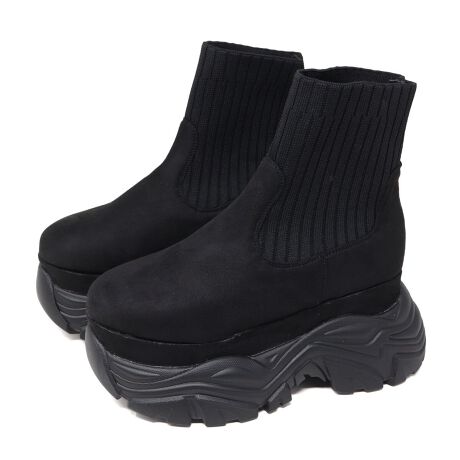 スタイル効果抜群な、立体的なボリュームソールが目を引くニットブーツ!