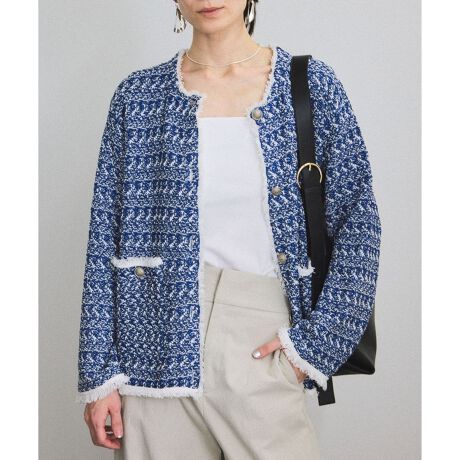 ラフに着こなせるツイーディフリンジニットジャケットです。