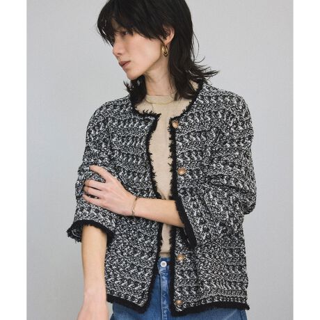 ラフに着こなせるツイーディフリンジニットジャケットです。