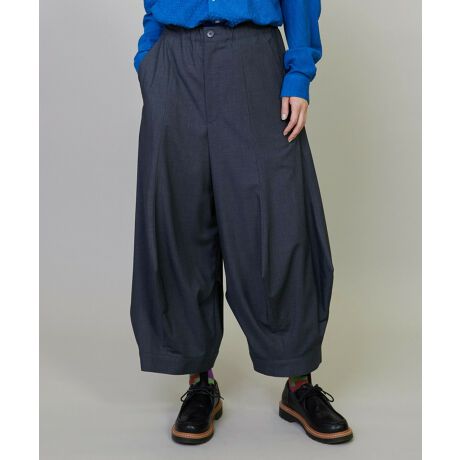 【素材】適度なハリと程よいストレッチ性に上品な表面感が特徴のツイル素材。しなやかさも有り大人見えのする雰囲気を出しています。【デザイン】前後、左右に立体的な「つの」をつくることで他にはないオリジナリティーのあるシルエットに仕上げています。斬新なシルエットながら素材の持つ上品なドレープ感としなやかさでスッキリとした仕上がりになっています。やや短めの着丈やウエストがゴムとヒモでイージーな仕立てになっている点などブランドらしいヌケ感も演出しています。【ブランド情報】FRAPBOIS/フラボア2001年にブランドスタート。「大人げない大人の服」をコンセプトに、大人が着るリラックスしたデイリーウェアを提案するコレクションブランド。レディースとメンズのアイテムをご用意しています。