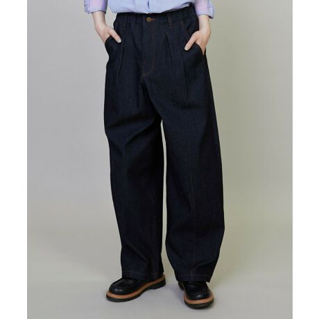 【素材】適度な厚みと抜群のストレッチ性にさりげなく入った縦の節がキレイ過ぎない表情を出しています。デニム生地のしっかり感は有りながらも肌触りの良いインディゴ素材で上品な雰囲気も出しています。【デザイン】フラボアで人気のデニムパンツシリーズから新たに「モーメント デニム」が登場。今までに無かったワイドテーパードシルエットはフロントのタックでしっかり見えをつくりつつ、裾の前後で取ったダーツが緩やかで落ち着いたテーパード感を出しています。ウエストにはゴムとヒモでイージーな仕立てになっていたり素材自体の持つ伸縮性で履き心地が良く、キメ過ぎないところも◎。ヒップポケットのオリジナルのパッチがさり気なくアクセントをつくっています。サイズ展開も豊富なのでお好きな雰囲気でサイズ選びも楽しめます。爽やかでアイテムとの相性も良いサックスとべシックでトラッドな雰囲気のネイビーの2色展開です。*こちらの商品はユニセックス商品です。【ブランド情報】FRAPBOIS/フラボア2001年にブランドスタート。「大人げない大人の服」をコンセプトに、大人が着るリラックスしたデイリーウェアを提案するコレクションブランド。レディースとメンズのアイテムをご用意しています。