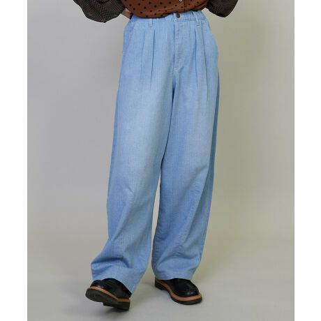 【素材】適度な厚みと抜群のストレッチ性にさりげなく入った縦の節がキレイ過ぎない表情を出しています。デニム生地のしっかり感は有りながらも肌触りの良いインディゴ素材で上品な雰囲気も出しています。【デザイン】フラボアで人気のデニムパンツシリーズから新たに「モーメント デニム」が登場。今までに無かったワイドテーパードシルエットはフロントのタックでしっかり見えをつくりつつ、裾の前後で取ったダーツが緩やかで落ち着いたテーパード感を出しています。ウエストにはゴムとヒモでイージーな仕立てになっていたり素材自体の持つ伸縮性で履き心地が良く、キメ過ぎないところも◎。ヒップポケットのオリジナルのパッチがさり気なくアクセントをつくっています。サイズ展開も豊富なのでお好きな雰囲気でサイズ選びも楽しめます。爽やかでアイテムとの相性も良いサックスとべシックでトラッドな雰囲気のネイビーの2色展開です。*こちらの商品はユニセックス商品です。【ブランド情報】FRAPBOIS/フラボア2001年にブランドスタート。「大人げない大人の服」をコンセプトに、大人が着るリラックスしたデイリーウェアを提案するコレクションブランド。レディースとメンズのアイテムをご用意しています。