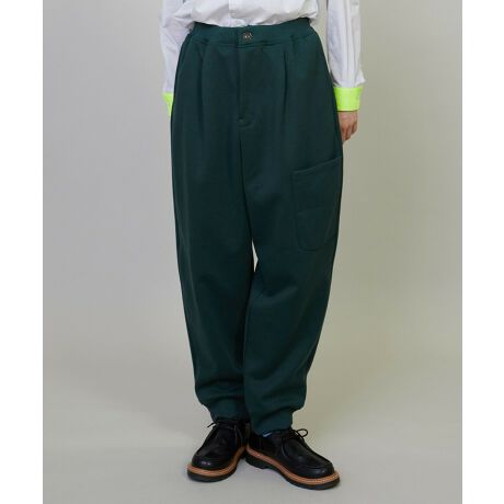 【素材】柔らかい光沢感と適度な厚み、伸縮性のあるキックバックも特徴のダブルフェイス素材。キレイな表面感とカジュアル過ぎない表情が上品な印象をつくっています。【デザイン】股上の深いサルエル調のジャージパンツながら、素材の持つ上品さと太過ぎない絶妙のシルエットで大人見えのするアイテムになっています。前の太ももにポケットのアクセントや裾の後の配色など、ブランドらしい遊びも効いています。*こちらの商品はユニセックス商品です。【ブランド情報】FRAPBOIS/フラボア2001年にブランドスタート。「大人げない大人の服」をコンセプトに、大人が着るリラックスしたデイリーウェアを提案するコレクションブランド。レディースとメンズのアイテムをご用意しています。