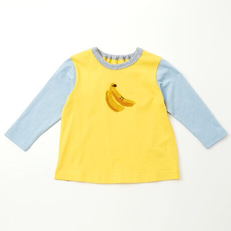 豊富なカラーバリエーションと、カラーによってフルーツのモチーフを変え、顔の表情をプラスした長袖Tシャツ。