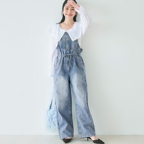 カジュアルながらも女性らしさを演出するデニムサロペット