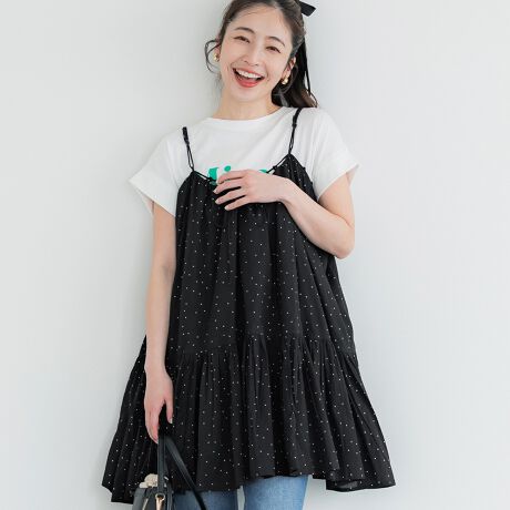 動くたびに揺れるフレアシルエットが女性らしいキャミソール。