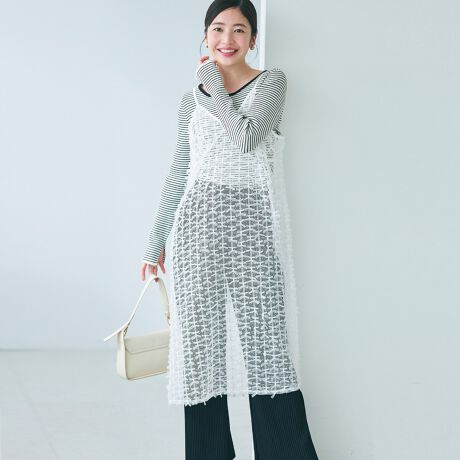 軽やかな透け感が抜け感をプラスし季節を問わず活躍します。