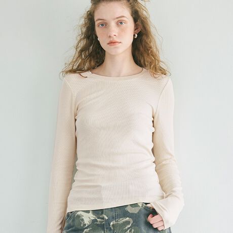 タイトなシルエットなので、ワイドパンツなどボリュームのあるボトムスを合わせてバランスをとるのがおすすめ。