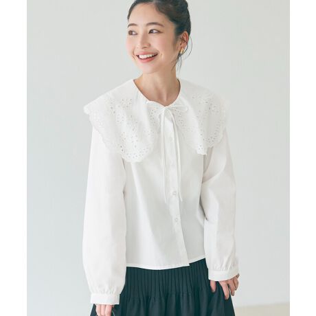 フェミニンな雰囲気漂うレースカラーブラウス。