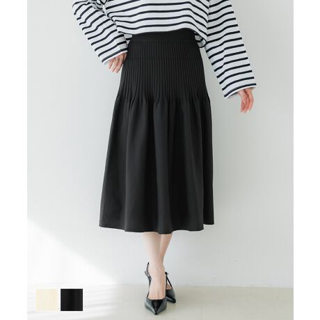 上品なシルエットと切り替えデザインが魅力のフレアスカート