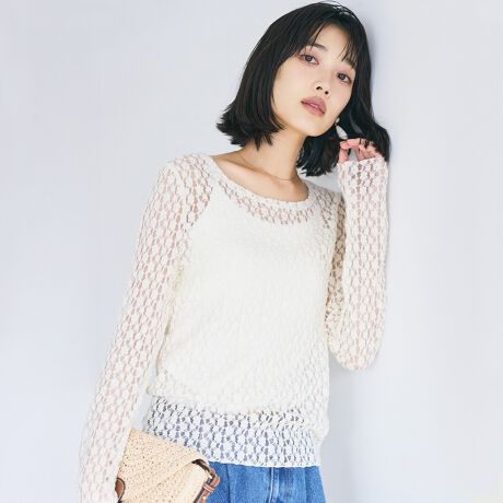 透け感のあるデザインで女性らしさを演出し、レイヤードコーデにも最適。