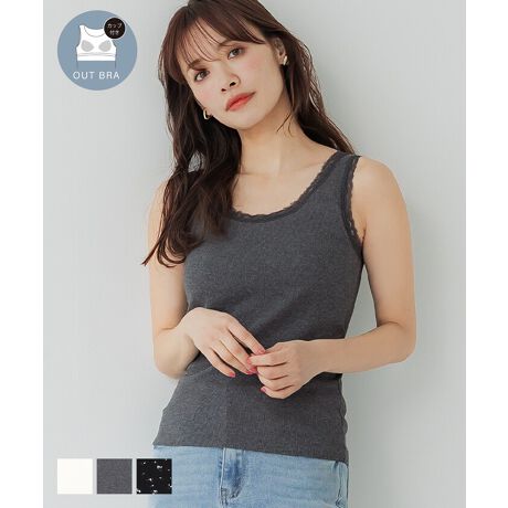 外で着られるブラトップス OUT BRA テレコリブレースタンクトップ 全3色