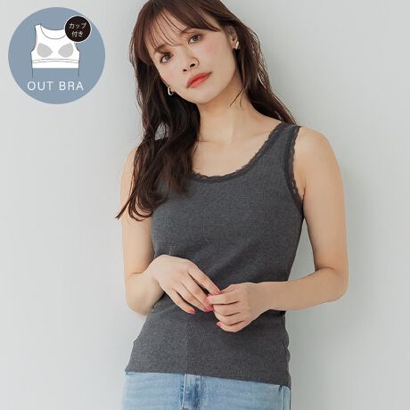 外で着られるブラトップス OUT BRA テレコリブレースタンクトップ 全3色