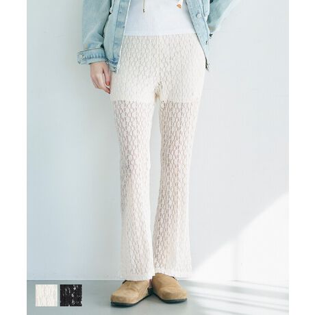 程よい透け感でトレンドライクなレースフレアパンツ