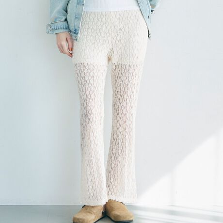 程よい透け感でトレンドライクなレースフレアパンツ