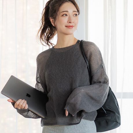 控えめな透け感で程よくヘルシー見せできるシアーニットトップス