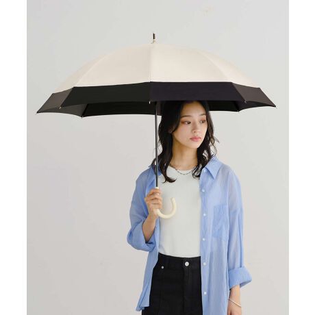 シンプルながらもおしゃれな配色でトレンド感漂う長傘タイプの日傘。