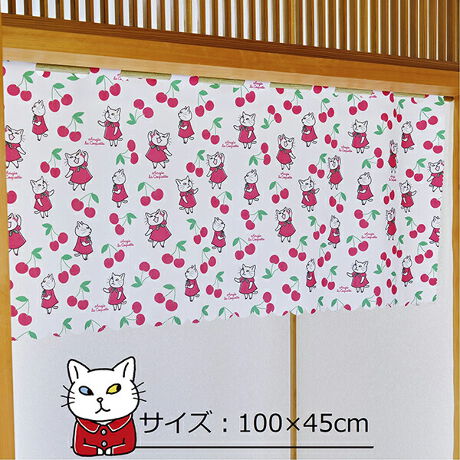 アンジーとチェリーのチラシ柄がかわいいカフェカーテンです。サイズは3種類あり、こちらは横幅100?、縦幅45?。小窓用としてはもちろん、キッチンや洗面所、棚の目隠しなど、さまざまな場所にお使いいただけます♪取り付け、お手入れも簡単でほどよい遮光性もあり、機能面もバッチリ◎ちょっとした空間をアンジーがおしゃれに彩ります♪