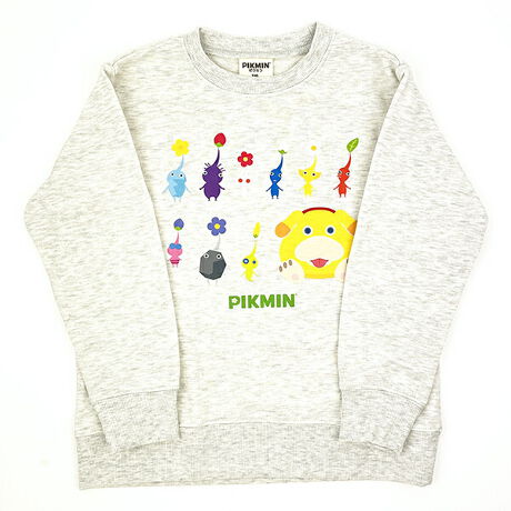 ピクミンのKIDSダンドリトレーナーです。ピクミンのキャラクターが大集合!使いやすいクルーネックデザインで学校用にぴったりです☆