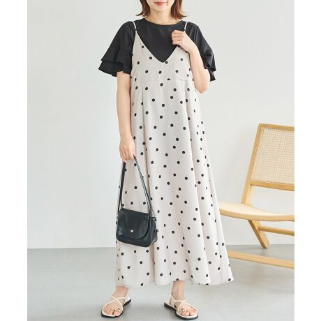 パンプスやサンダル、スニーカーなど合わせる小物でフェミニンにもカジュアルにも合わせやすい万能ワンピース。