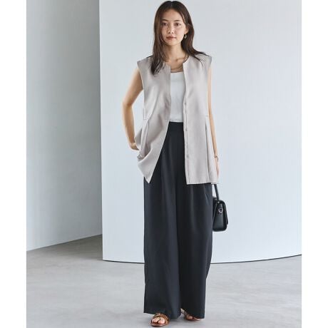 同素材のワイドパンツ、ショートパンツとのセットアップスタイルもおすすめです。