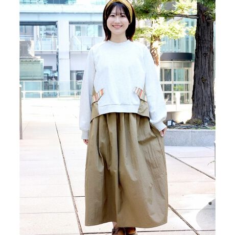 ウエスト部分にはゴムを入れているので、メリハリがありワンピース見えしないこなれたコーデを演出します。