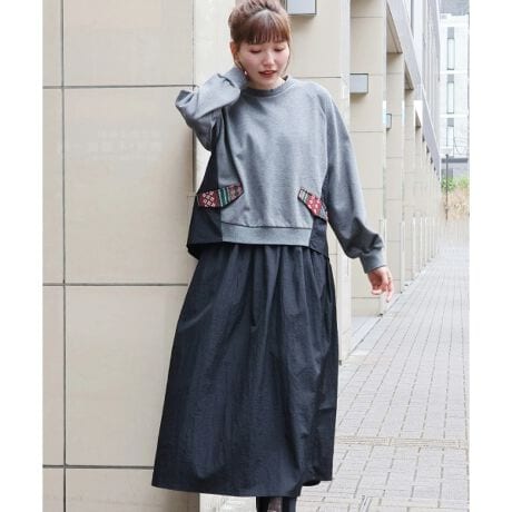 ウエスト部分にはゴムを入れているので、メリハリがありワンピース見えしないこなれたコーデを演出します。