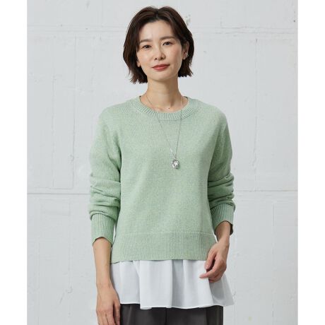 絶妙なメランジ調の色彩が魅力の、オンオフ兼用のクルーネックニット