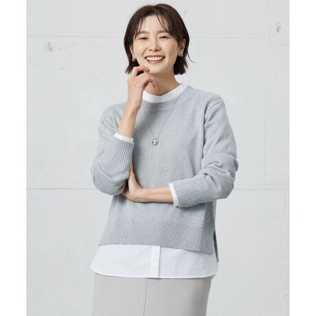 ゆるすぎず、程よいフィット感のあるサイジングに仕上げたクルーネックニット。適度な肉感で、春コートのインとしてもおすすめです。両脇にスリットを入れて前後差をつけているため、裾をアウトにしても、前裾のみボトムウエストに入れてもサマになります。キレイ目のオンコーデはもちろん、カジュアルなアイテムと合わせた大人なデイリースタイルまで幅広く活躍する万能アイテムです。
