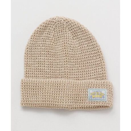 [型番:44YP5103-2025]綿麻素材のニットキャップ。カラー展開が豊富で可愛いタグの印象的なデザインが、お出かけをより一層楽しくさせる。